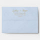 Complétez votre papeterie mariage avec cette enveloppe élégante, conçue pour correspondre à la Suite Mariage Florale Bleu Poudre & Or. Doté de fleurs d'aquarelle douce aux accents bleu poudre et or subtil, cette enveloppe ajoute une touche raffinée et romantique à votre présentation d'invitation. Parfait pour envoyer des cartes Enregistrer les dates, les invitations ou les cartes RSVP.