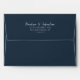 Une enveloppe minimaliste de mariage bleu clair boho avec adresse de retour. Ce qui présente une simple couleur bleu foncé. Avec la calligraphie manuscrite blanche des prénoms de la mariée et du marié ainsi que l'étiquette d'adresse de retour personnalisée. Et informations personnalisables sur l'adresse de retour..