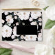 Motif de roses blanches sur une élégante enveloppe de mariage noir. Typographie grise personnalisable pour votre adresse de retour