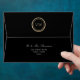 Ajoutez une touche d'opulence à votre suite mariage avec cette élégante enveloppe en noir et or. L'élégant extérieur noir est doté d'une typographie raffinée et d'un monogramme circulaire classique, tandis que l'intérieur est orné d'un revêtement de parties scintillant en faux or. Idéal pour les mariages formels, les événements haut de gamme ou les célébrations glamour, cette enveloppe élève vos invitations sans effort avec une esthétique audacieuse mais intemporelle. Entièrement personnalisable avec votre adresse de retour et vos initiales.