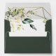 L'extérieur de l'enveloppe est à l'ombre avec code couleur hexadécimal - 3b483d, qui est une teinte vert foncé qui correspond aux éléments graphiques verdoyants. Le design intérieur présente un élégant cadre géométrique imprimé de couleur or décoré de fleurs d'aquarelle dans des tons neutres, comme - blanc, ivoire, champagne, et plus. Les éléments floraux se composent de roses, de pivoines, d'hydrangée et de souffle de bébé. Ce modèle moderne propose également de la verdure, de l'eucalyptus, des éléments de feuilles et plus pour un look très unique pour s'adapter à tous les thèmes mariages ou pour correspondre à n'importe quelle saison mariage.
