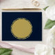 Elégant, simple et moderne rond bleu marine avec belle calligraphie or pour votre mariage de jour spécial, sauf la date, faire-part fiançailles invitations. Customisez avec les détails au dos de la mariée et du marié et l'adresse de retour.