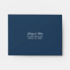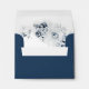Une élégante enveloppe bleue auto-adressée avec du texte blanc et une doublure florale bleue et blanche. Parfait pour retourner les cartes de réponse RSVP.