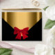 Elégante invitation noire et or et enveloppe de circonstance spéciale faire-part. Ajoutez votre adresse de retour au rabat arrière. Vous pouvez supprimer, redimensionner et déplacer le joli arc rouge.