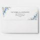 Enveloppe de Faire-part de mariage d'ivoire bleu Dusty. Cette invitation à la douche de mariage élégante et élégante présente de magnifiques aquarelles peintes à la main de la couleur bleu outrepasse. Trouvez les articles correspondants dans la collection florale d'ivoire bleu Dusty.