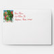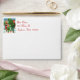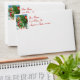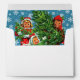 Enveloppe de vacances avec un encart d'enfants transportant le sapin de Noël à la maison à travers la neige. L'adresse de retour est personnalisable.