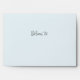 Conçu pour coordonner avec le Lea Delaveris Design script simple enregistrer la collection de dates, cette enveloppe est le moyen idéal pour envoyer vos annonces fiançailles. Coordonnez votre suite avec ce script simple et élégant sur un dos bleu ciel clair. L'avant a un "Livrer à" correspondant tandis que l'arrière a "enregistrer la date" dans le même script avec votre adresse de retour.