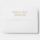 Cette simple enveloppe d'invitation à la calligraphie dorée apporte un luxe élégant mais une atmosphère moderne à la fois minimaliste et plus traditionnelle ou formelle mariage ou événement. La calligraphie décontractée permet une atmosphère antique, tandis que le design neutre et élégant peut être combiné avec tous les aspects uniques de votre célébration. L'enveloppe est munie d'une adresse de retour imprimée sur le dos pour permettre un regard propre sur l'avant.