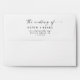 Cette enveloppe de faire-part de mariage de script moderne est parfaite pour un mariage minimaliste. Le design simple en noir et blanc présente une typographie industrielle unique avec style boho moderne. Personnalisable dans n'importe quelle couleur. Gardez le design minimal et élégant, en l'état, ou personnalisez-le en ajoutant vos propres graphiques et artwork. Personnalisez le rabat d'enveloppe avec votre adresse de retour. Étiquettes de adresse invités vendus séparément.
