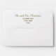 Enveloppe simple, élégante, minimaliste en mariage blanc, avec adresse de retour, en combinaison avec l'éléphant monogramme en feuille d'or - symbole de l'amour, de la fertilité et de la chance. . Elégant, soigné, unique, pour marié avec goût moderne et contemporain. Vous pouvez facilement désactiver l'adresse à l'avant.