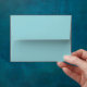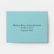 Employez cette enveloppe faite sur commande au lieu des enveloppes blanches génériques qui viennent norme avec toutes les cartes et invitations dans la collection florale de mariage damassé. Cette enveloppe bleue d'aqua inclut une adresse pré-imprimée sur de la couleur bleue plan et plus légère sur l'intérieur. La taille de défaut est de 5 3/4" W X 4 3/8 H (A2) et ajustements les petites cartes de voeux et invitations. Vous pouvez commander une taille différente en choisissant la "personnaliser il" et "choisissez votre type de papier et couleur". A7 adapte les invitations 5x7 et les cartes. A6 est pour la petite invitation, mais adaptera également la petite carte de voeux (carte de note). A2 est pour la petite carte de voeux (carte de note), mais adaptera également la petite invitation. Nous offrons également cette conception d'enveloppe sans adresse imprimée si vous écririez plutôt vos propres ou emploieriez des étiquettes de adresse.