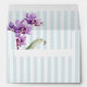 Enveloppe d'anniversaire élégante et féminine. Ce design présente une orchidée violette aquarelle sur un arrière - plan à rayures vertes et blanches. Simple et moderne. Chaque texte est personnalisable selon vos besoins.