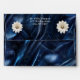 Un arrière - plan de soie bleu satin et éclatant avec des fleurs blanches et des étincelles dorées se répètent, parfait pour la décoration intérieure, les vêtements ou les cartes d'invitation personnalisées.