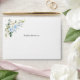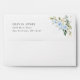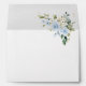 Complétez votre trousse d'anniversaire avec cette enveloppe élégante. Le design présente des fleurs d'aquarelle bleu et blanc, de la verdure et des confettis d'or sur l'arrière - plan blanc.