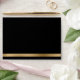 Enveloppe polyvalente élégante faite en noir, avec des graphismes de bandes d'or sur l'avant et sur le bord du rabat. À l'intérieur de l'enveloppe il y a des graphiques d'une doublure d'or solide. Personnalisez l'adresse de retour en fonction de vos besoins. Idéal pour les invitations d'occasion spéciale, merci cartes et annonces.