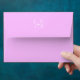 L'extérieur de l'enveloppe est en couleur rose-violet avec vos initiales ou monogramme. L'intérieur comprend d'exceptionnelles fleurs d'hydrangée sur arrière - plan rose et violet d'aquarelle. Quelques éléments avec la permission d'ArtsyBee, Pixabay.