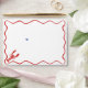 Add a special touch to your invitation mailing with these illustrated envelopes. The front of the envelopes features my hand-drawn scalloped ribbon style frame in red with my realistic style lobster illustration in the low left corner. The reverse side has a spot to add your return address on the back flap and has a red lobster graphic below. The inside of the envelopes has a blue and white striped pattern for a nautical look.