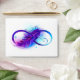 Infinity symbole with a beautiful feather painted in purple and blue bright colors on white background