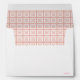 Enveloppe blanche avec motif carré rose qui recouvre toute l'enveloppe.