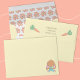 Adorable enveloppe jaune clair avec un lapin aquarelle et quelques délicieuses carottes fraîches. L'intérieur de l'enveloppe est agrémenté d'un joli petit motif à fleurs orange. Personnalisez-le avec votre nom et votre adresse en utilisant le champ modèle. Parfait pour Pâques ou un baby shower. © ArianeC Illustrations-Tous droits réservés