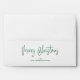 Style d'écriture moderne texte "Joyeux Noël" à l'arrière avec motif de buffle vert et noir à l'intérieur de cette enveloppe. Cette enveloppe de taille A7 est parfaite pour une carte 5x7. Personnalisez avec votre nom.