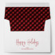 Style manuscrit moderne texte "Happy Holiday" sur le côté arrière de cette enveloppe accentué avec motif à la mode de buffle rouge et noir à l'intérieur de cette enveloppe. Cette enveloppe de taille A7 est parfaite pour une carte 5x7.