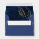 Un arrière - plan aquarelle dans les tons bleu roi à bleu marine est utilisé pour créer les pièces de cette belle suite mariage. L'enveloppe mariage de coordination montrée ici présente également un bel intérieur en dégradé surmonté d'une abstraite de lignes dorées et d'effets lumineux scintillants. Ajoutez facilement vos propres noms et votre adresse de retour en utilisant le modèle fourni. Recherchez ID867 pour voir d'autres pièces et choix de couleurs pour cet ensemble.