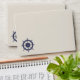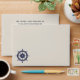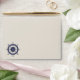 Enveloppe de faire-part de mariage à thème nautique faite en ivoire vintage, avec illustration vintage bleue du volant d'un navire décorant l'avant. L'intérieur de l'enveloppe est fait dans un bleu solide. L'adresse de retour, en bleu, est entièrement personnalisable et prête à être personnalisée pour votre grand jour. Jolie touche finale à nos invitations de mariage à thème bleu et ivoire Nautique.
