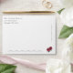 La conception avant affiche l'adresse de retour dans une police nuptiale élégante en lettres argentées. Une élégante floraison encadre les bords droit et inférieur avec l'image de deux roses joints dans un coin. La conception du rabat comporte le symbole traditionnel de la croix et les anneaux exposés au centre entre les initiales de la mariée et du marié. La police nuptiale des initiales ajoute l'apparence d'élégance et de sophistication. Conçu pour coordonner avec la Suite Mariage catholique Rose fine.