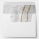 L'intérieur de cette élégante enveloppe de faire-part de mariage moderne présente une aquarelle grise et blanche décorée d'une parties scintillant en faux or. Customisez le rabat arrière avec les noms de la mariée et du marié dans le script d'écriture au fusain gris et l'adresse de retour dans la police de cuivre.