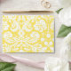 Elégante enveloppe de cartes de voeux A7 jaune et blanc canarien brillant avec motif de damas floral élégant et vintage. Customisez-le avec votre adresse de retour. Disponible en cartes de correspondance et de nombreux autres produits mariages.