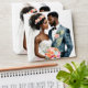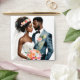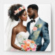 L'aquarelle présente un beau couple à la peau brune comme mariée et mariée. Cet article mélané a une palette de couleurs pêche et corail avec des accents floraux.