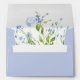 Une jolie enveloppe mariage en bleu cornflower avec fleurs d'aquarelle bleu clair et verdure à l'intérieur.