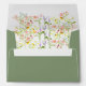 Enveloppes mariages en vert sauge avec des fleurs sauvages aquarelles à l'intérieur.