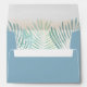 Branches de palmiers d'aquarelle et un lavabo sablonneux aux accents bleus de la plage. Un design moderne, élégant et aéré.