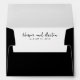 Enveloppe Mariage de script noir simple. Combinant le moderne et le classique, ces enveloppes design et chic noir et blanc, design et minimaliste, incarnent l'élégance contemporaine. Grâce à leur typographie manuscrite et leur style minimaliste, ces invitations uniques à un mariage feront de votre journée spéciale une véritable extraordinaire. Faites savoir à vos invités à quel point votre événement sera élégant avec ces invitations incroyablement élaborées. Rechercher les produits correspondants dans le noir et blanc | Mariage de script minimaliste moderne.