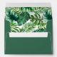 Enveloppes mariages modernes avec aquarelle tropicale design feuille. Personnalisez les enveloppes avec l'adresse de retour sur le rabat. Conception parfaite pour un été, une plage ou un mariage de destination.