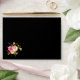 Les fleurs florales d'aquarelle brillamment colorées dans les tons rose, pêche et lavande abondent avec une couverture complète à l'intérieur de cette enveloppe sur un arrière - plan noir avec un simple bouquet qui orne le coin inférieur gauche de l'enveloppe noire (ou vous choisissez la couleur) et vos noms et adresse de retour en texte or à l'arrière. Veuillez noter que si vous changez de couverture d'enveloppe extérieure, la couleur du texte peut avoir besoin d'être ajustée afin qu'elle apparaisse correctement sur la couleur arrière - plan que vous choisissez. Conception composite par Holiday Hearts Designs (droits réservés).