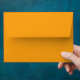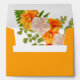 Une enveloppe moderne et élégante en or, en bleu et orangé, à la mariage florale.