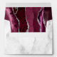L'intérieur de cette élégante enveloppe de faire-part de mariage moderne présente une aquarelle bordeaux et un design de géode d'aquarelle orné de parties scintillant en faux argent. Customisez le rabat arrière avec les noms de la mariée et du marié en noir écriture manuscrite et l'adresse de retour en cuivre sur un arrière - plan gris et blanc en marbre.