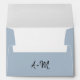 Enveloppe en faire-part de mariage bleu poussiéreuse du mariage de texte modifiable portant les initiales du monogramme de la mariée et du marié à l'arrière. Idéal pour une typographie moderne branchée mariage élégant. Papier à lettres correspondant disponible.