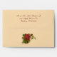 Enveloppe faire-part de mariage romantique faite dans une crème vintage, avec des oeuvres vintages d'une belle rose rouge sur le dos. L'intérieur de l'enveloppe est fait dans un rouge foncé riche. Personnalisez l'adresse de retour rouge, sur le rabat arrière, pour répondre à vos besoins. Jolie touche finale à notre Faire-part de mariage et set Red Rose Vintage.