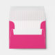 Whimsical Bright Pink, mariage enveloppe carte rsvp. L'enveloppe est revêtue d'un motif rayé blanc et rose pâle. Caractéristiques, adresse de retour sur l'avant et élément anneaux de gribouillage sur le rabat arrière.