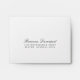 Simple, élégant et de bon goût, ce design modèle d'enveloppe personnalisée comprend un modèle texte sur le avec votre adresse de retour sur le devant de l'enveloppe pour que vos invités vous renvoient leurs cartes RSVP. Il utilise un élégant texte noir pour personnaliser avec votre nom et votre adresse.