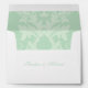 Le feuillet intérieur de cette enveloppe a été imprimé avec un motif damassé élégant, classique, simple mais élégant. Un emballage parfait pour les invitations de mariage. Facultatif : vos noms en texte de script sous le rabat arrière, et/ou votre adresse pré-imprimée en police de script sur le devant. (Si vous ne voulez pas ces extras, laissez les champs vides !) Enveloppe imprimée sur papier recyclé. Remarque : la conception de damas se poursuit tout au long de l'enveloppe.