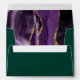 L'intérieur de cette élégante enveloppe de faire-part de mariage moderne présente un design d'agate d'aquarelle violet, paré de parties scintillant en faux or. Customisez le rabat arrière avec les noms de la mariée et du marié en écriture manuscrite de couleur or et l'adresse de retour en police cuivre sur un arrière - plan vert émeraude.