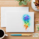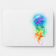 Grande méduse irisée, artistiquement dessinée, brillante, avec de longues tentacules sur le blanc, peinte sur l'arrière - plan multicolore. Méduse arc-en-ciel.
