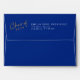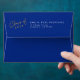 Enveloppe de graduation de script "Veuillez livrer à". Conçu en bleu royal et jaune mais les couleurs peuvent être customisées à l'aide de l'outil de modification pour correspondre aux couleurs de votre école. Le rabat arrière peut être personnalisé avec votre année de graduation, votre nom et votre adresse de retour. © Kimbellished, LLC