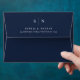 Ces enveloppes mariage modernes et élégantes présentent un design de texte simple bleu marine et blanc qui dégage un style minimaliste. Ajoutez vos initiales ou votre monogramme pour les rendre complètement vôtres.