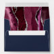 L'intérieur de cette élégante enveloppe de faire-part de mariage moderne présente une aquarelle bordeaux et un design de géode d'aquarelle orné de parties scintillant en faux argent. Customisez le rabat arrière avec les noms de la mariée et du marié en gris argenté sur un arrière - plan bleu marine.